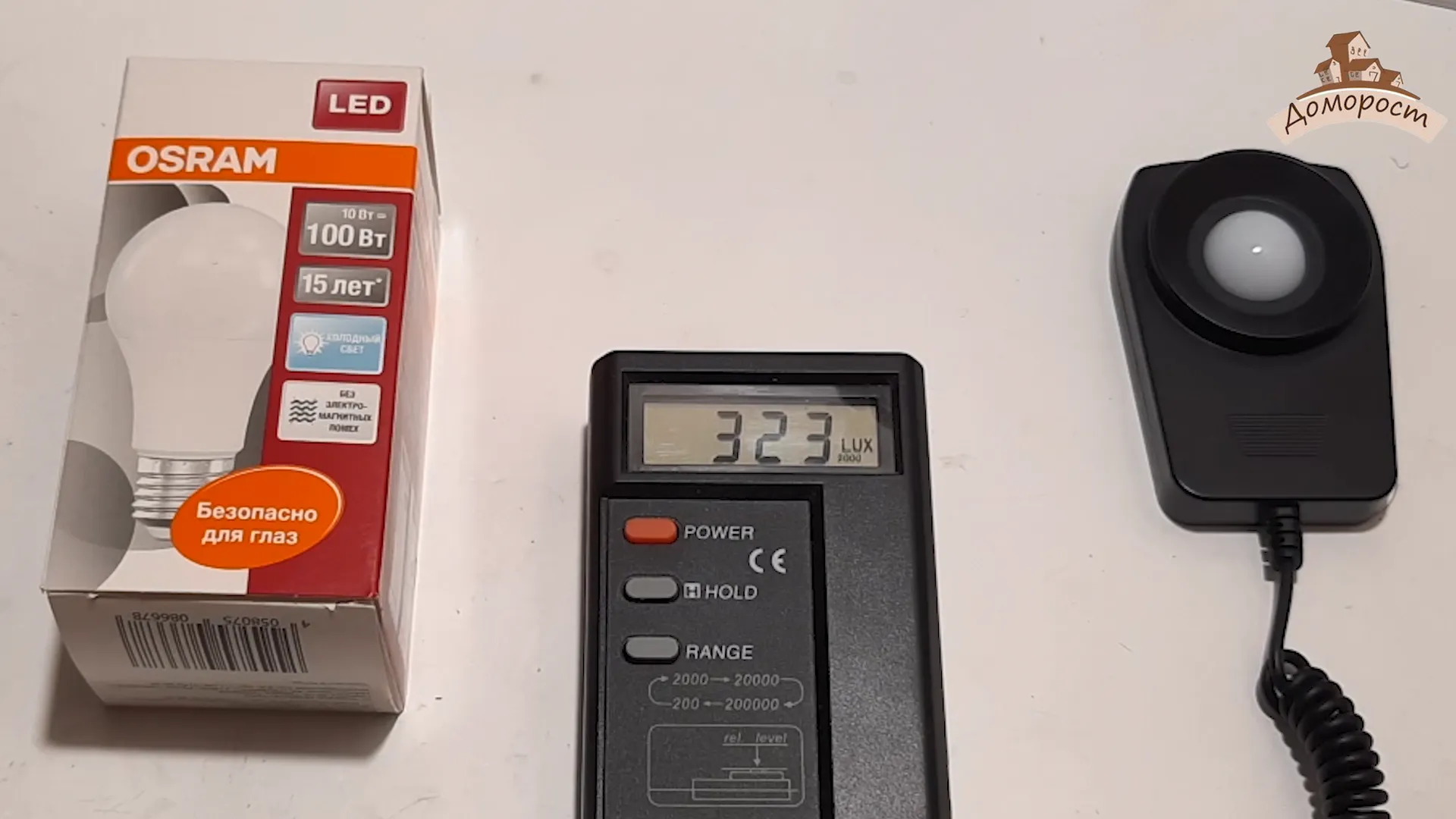 Проверим количество света от лампочки. Устанавливаю ее в метре над Люксметром, выключаю все остальное освещение.