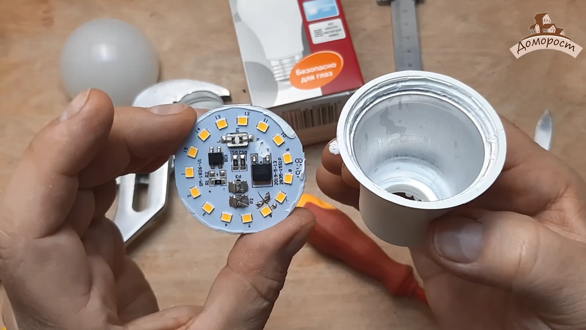 Охлаждение лампы довольно стандартное — простое соединение диодной платы с корпусом-композитом.