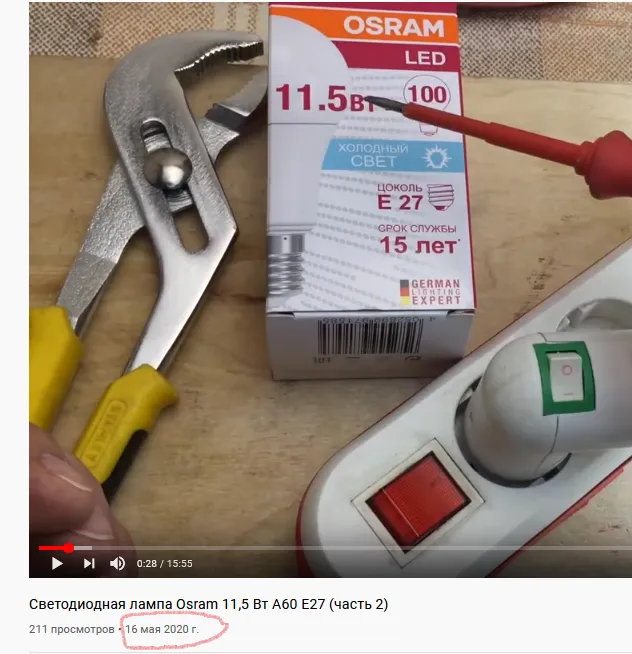 Комментарий меня, честно говоря, несколько удивил. Действительно, на канале есть видео от 11 ноября 19 года про лампу Osram. https://www.youtube.com/watch?v=tzpcSXtzOSA&t=568s Но это совершенно другая лампа 13W.