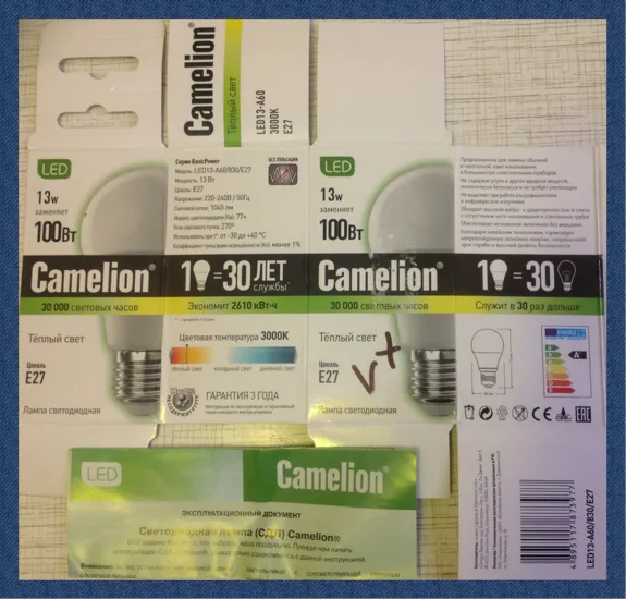 Светодиодная лампа Бренд - Camelion Название - A60 LED 13W 3000K Дата прохождения ТО - март 2017 Артикул - LED13-A60/830/E27 Гарантия - 3года