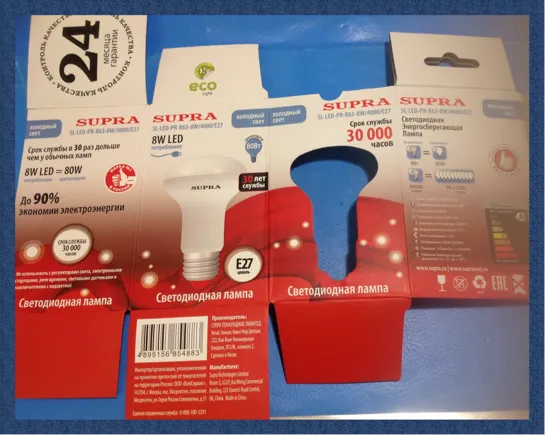 Светодиодная лампа Бренд - Supra Название - R63 LED 8W 4000K Дата прохождения ТО - июль 2017 Артикул - SL-LED-PR-R63-8W/4000/E27 Гарантия 2 года
