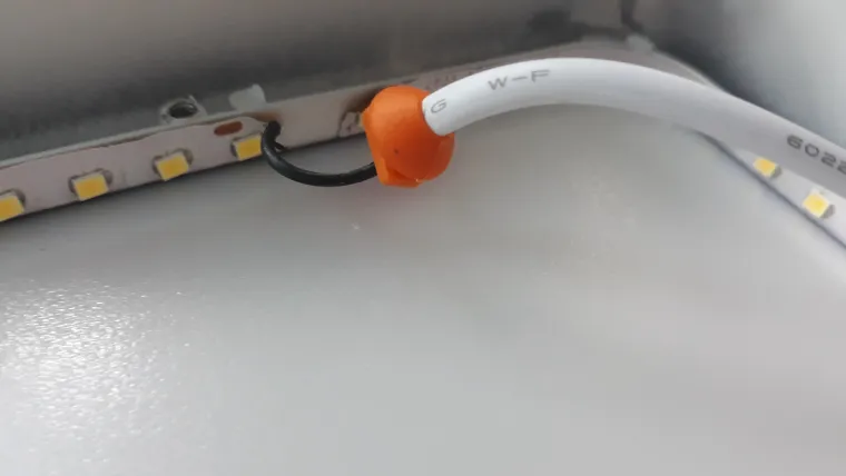 Имеется 1 темное пятнышко и много неравномерностей подсветки, думаю засвет из за того что в этом месте подключается провод, ведь именно он входит внутрь светильника в этом месте. Немного затемнив фото все становится лучше видно: