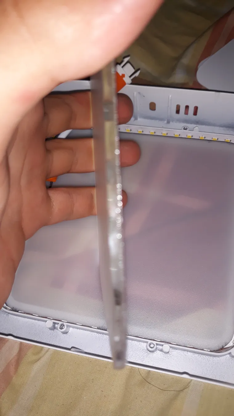Там оказалось несколько пленочек и кусок толстого тяжелого стекла, предназаченного для рассеивания света от светодиодов, установленных по бокам...