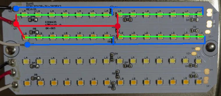 @Схемотехник Получается если сгорит один светодиод, то максимум перестанут светить 7 из 504 светодиодов светильника. И даже если включены только тёплые или только холодные светодиоды, то максимум яркость упадёт на 3%, что будет практически не заметно.