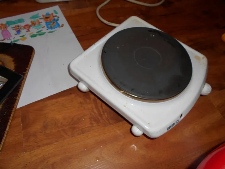 Вроде бы если греть на плитке, то нужно миску положить на плитку, а в миску засыпать песок, а на песок класть прожектор. Возможно так будет обеспечен равномерный нагрев...
