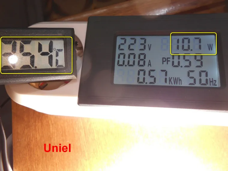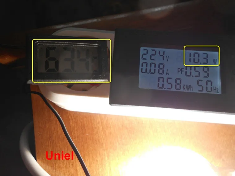 После прогрева лампы мощность почти не изменилась 5,7 W . Температура колбы лампы 49,3 °C. Температура меньше чем у ранее описанных ламп , но так и мощность PHILIPS тоже меньше.