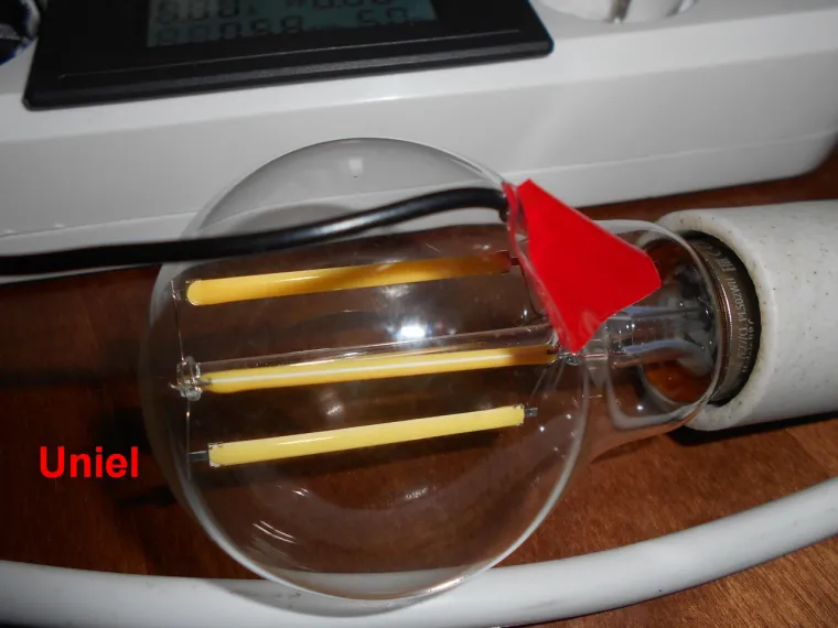 После прогрева лампы мощность 6,2 W . Температура колбы лампы 52,2 °C