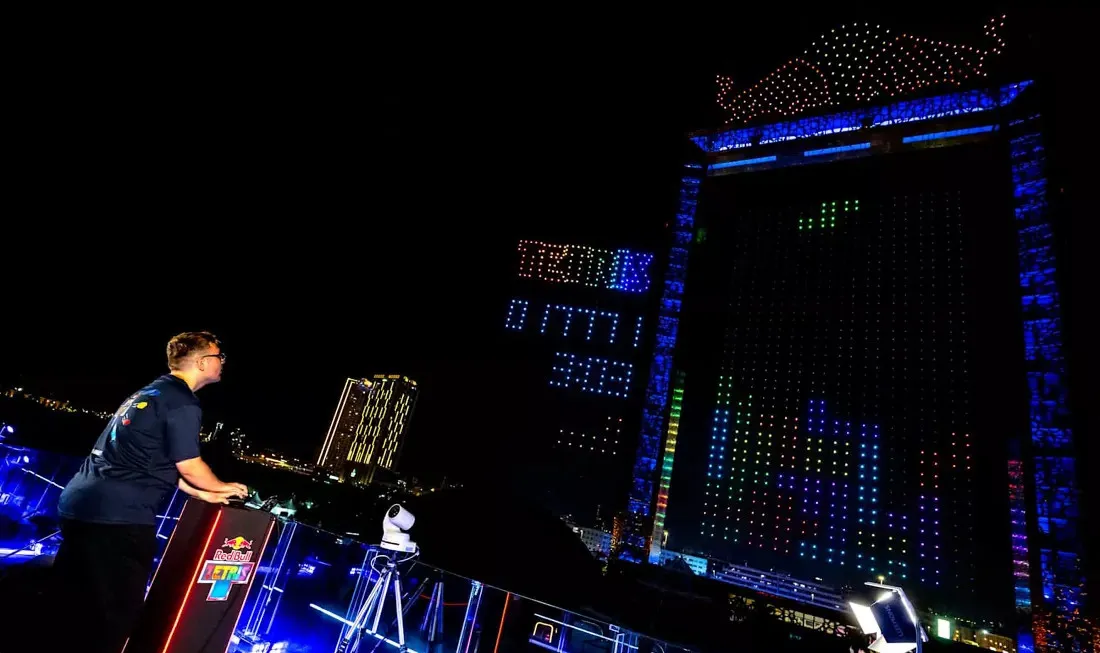 В прошедшее воскресенье Дубай выступил площадкой для необычного киберспортивного шоу Red Bull Gaming — турнира по классическому «Тетрису», но в совершенно нестандартном формате. Вместо привычного экрана организаторы использовали воздушную инсталляцию из 2800 квадрокоптеров. Синхронная работа дронов и программируемая подсветка превратили небо в живой пиксельный дисплей, на котором "транслировалась" игра.