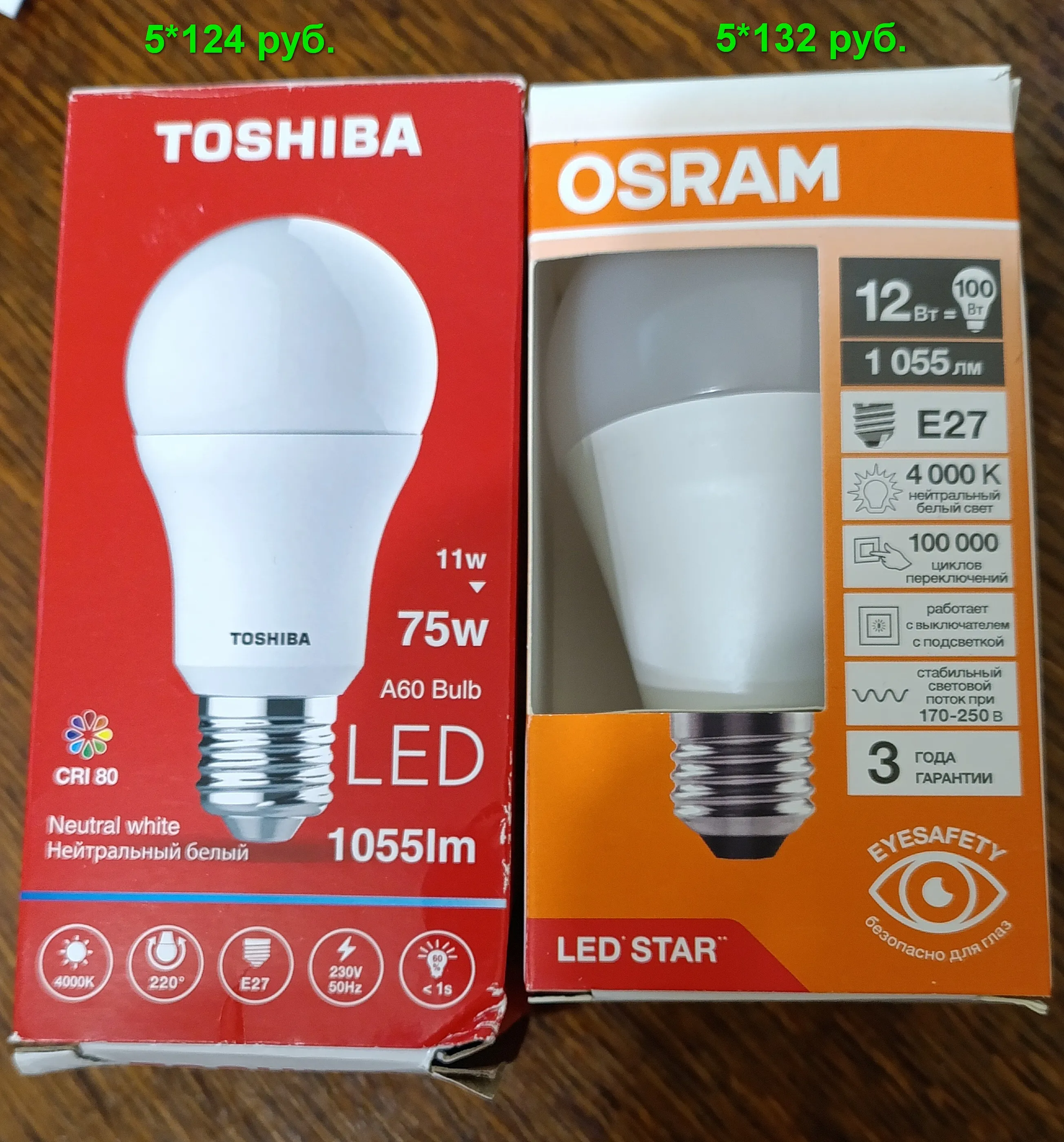 Toshiba 11 W / Osram 12 W . Сравним ?