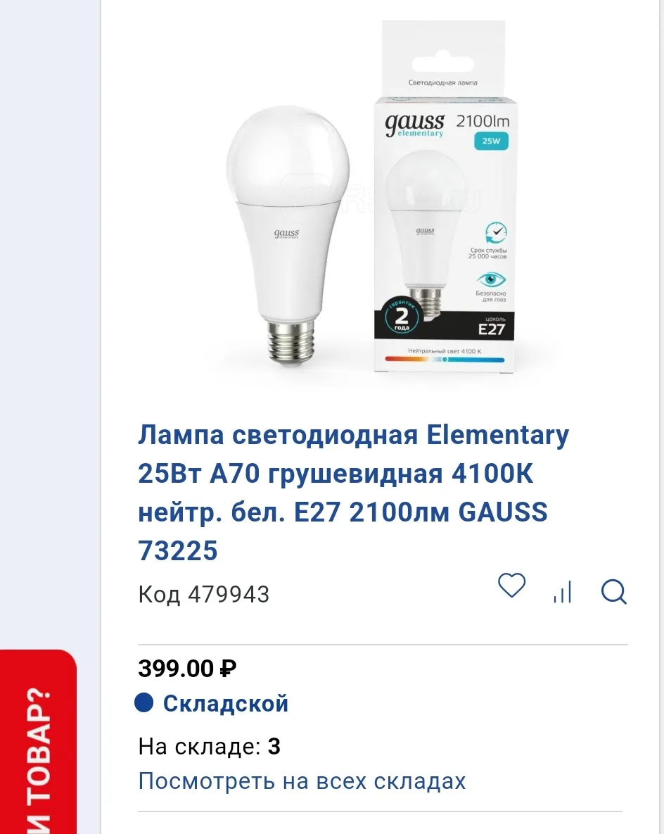 Тот самый ГАУСС 2024? Gauss elementary 25 ватт.