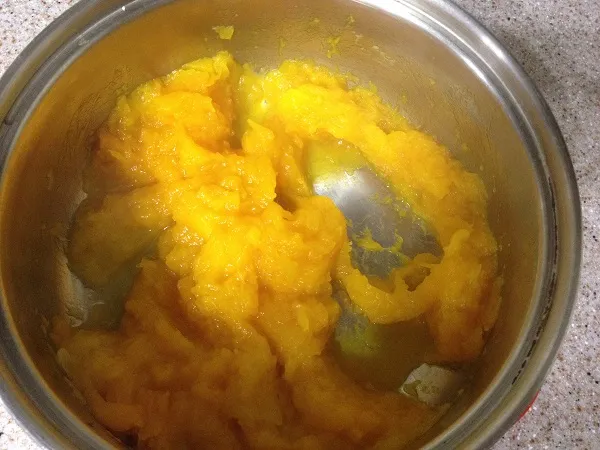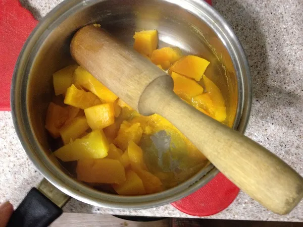 Тут и тыква сварилась. Выливаем воду делаем из нее пюре.