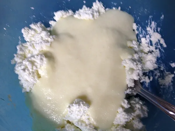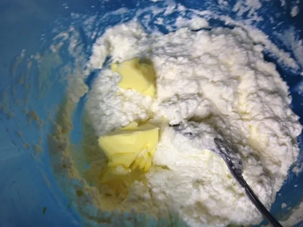 Берем творог. В моем случае не жирный - 9%.