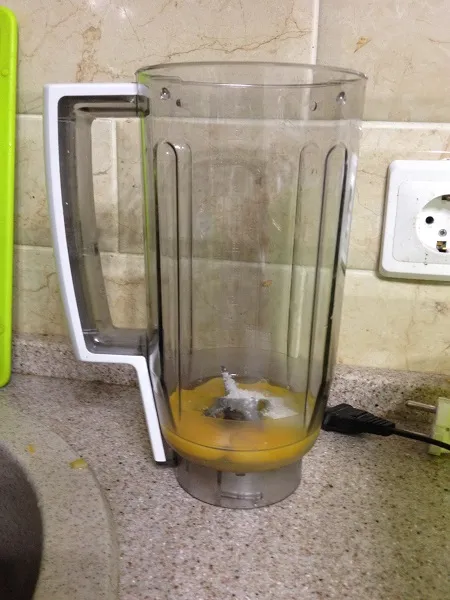 Теперь в блендере смешиваем яйцо с сахаром.