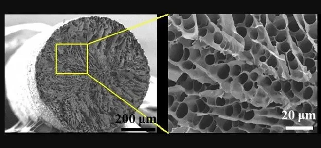 Университет науки и технологии Хуачжун (Китай) разработал «фазовую» ткань из шелковой пряжи и хитозана. Хитозан представляет собой природное соединение, полученное из раковин ракообразных. Такое соединение образует волокна с пористой микроструктурой. С помощью полиэтиленгликоля (ПЭГ) поры заполняются, и в дальнейшем этот элемент может менять свое состояние в зависимости от температуры. В жару ПЭГ становится жидким, а холод – становится твердым. А чтобы вещество те вытекало при нагревании, волокна дополнительно покрывают органическим полимером полидиметилсилоксаном. Такая комбинация веществ дает прочность нитям, гибкость и возможность отталкивать воду. Специалисты уже испытали перчатку, изготовленную из такого соединения. Рука с перчаткой помещалась в камеру, нагретую до 50 градусов. Жидкость, полученная от ПЭГ, поглощала тепло извне, охлаждая одновременно кожу на руке, где она прилегала к перчатке. В камере рука в перчатке, охлажденной до 10 градусов, ПЭГ становился твердым, отдавая накопленное тепло и согревая кожу руки. Ученые уверены, что в будущем мощно массово производить такую ткань, интегрируя ее с текстильной промышленностью.