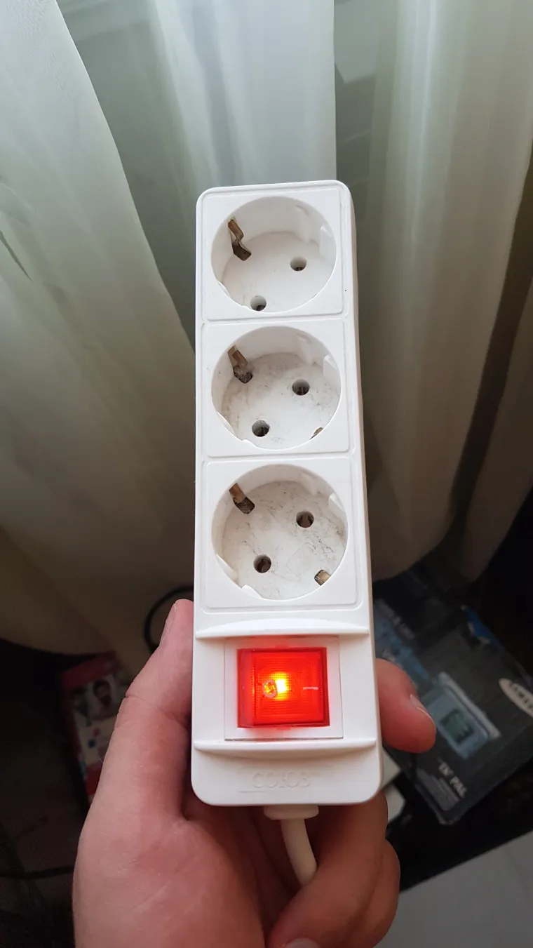 Очень плохо стала держать вилку последняя розетка, вилки все в ней держатся так - что вообще не держатся и от малейшего шелевения пропадает контакт. Более менее живет там хорошо большая "евро" вилка. Ну и крайняя розетка к кнопке тоже стала плохо держать вилки. Ок, посмотрим модель: