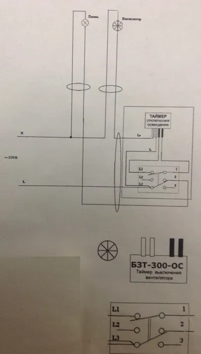 Давно уже ни для кого не секрет такая умность дома, как автоматическое включение вентилятора в санузле. Маленькие приборчики, например Гранит БЗТ-300-СУ или несколько иной Гранит БЗТ-300-СУ-Ф ( отличается наличием встроенного фотореле и возможностями регулировок задержек) специально предназначены для того, чтобы автоматически включать вентилятор в санузле. Однако, у меня, например, некоторое удивление вызывает логика работы этих приборов. А логика их работы такая - вентилятор должен автоматически включиться через несколько секунд после включения света в санузле и автоматически выключиться через какое то время после выключения света в санузле. Ну да, наверное с такой логикой можно согласиться когда разговор идет именно только про туалет, однако когда туалет совмещен с ванной, что не редкость в санузлах частных домов, тогда такая логика начинает изрядно, на мой взгляд, хромать. Действительно, если ты посетил совмещенный санузел не с целью , извините, справить естественную нужду, а с целью понежиться в ванне ( а то и в джакузи) тогда , по этой логике, все будет происходить так - вошел ты в санузел, включил свет, открыл теплую воду- наполняется ванна ( джакузи) и ты уж было начал нежиться в ней, и тут, через , например, 30 секунд , автоматически включается вытяжной вентилятор и начинает активно вытягивать все тепло из ванной комнаты на улицу..., при этом, чтобы остановить такую умность автоматического вентилятора , тебе надо вылезти из ванной, открыть дверь , выключить в ванной комнате свет :-( , закрыть дверь, в кромешной тьме опять плюхнуться в ванну, подождать , пока вентилятор поработает еще минут пять ( ну такая у него логика работы) и толко потом наступит тишина и вновь начнет теплеть вокруг тебя, сидящего в ванной в кромешной тьме... Ну как то это, на мой взгляд, не совсем то, как я бы хотел принимать ванну. А как бы хотел? Ну перво наперво я хотел бы иметь возможность сделать очень простой выбор - включать или вовсе не включать вентилятор . Второе - хочу, чтобы если даже я и включил вентилятор, то он бы не работал без останова все время, пока в санузле горит свет, а автоматически выключался бы, ну минут, например, через пять . Еще хочу, чтоб вентилятору можно было сказать - а поработай ка минут пять , после того, как я , закончив свои дела..., выйду из санузла и выключу свет, и сам выключись потом, минут через пять. Вот, мне это надо . Такую автоматику хочу в свой совмещенный санузел. Рассказываю как я это сделал. Берем двойной настенный переключатель на два положения для скрытой проводки и установочную коробку к нему. Берем от того же производителя, так называемый "Таймер отключения освещения БЗТ-300-ОС" . Аккуратно размещаем этот маленький приборчик в той самой установочной коробке, в которую встанет и переключатель и , малость помучавшись с неудобным монтажем проводов, собираем все по такой схеме ( на схеме все нарисовано не по госту, кого это напрягает может с нескрываемым удовольствием напрячься):