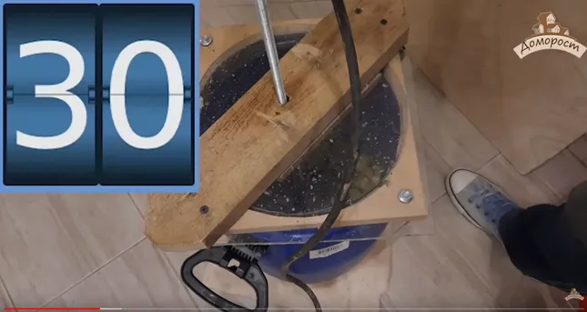 @akukushkin1 Не. Не надо бочку приделывать жестко к полу. А вибрации поглощает коврик, который под ней. Только жать вниз перфоратором надо уверенно и надежно держать его в руках, нельзя позволить круглому ножу выскочить из центральной опоры.