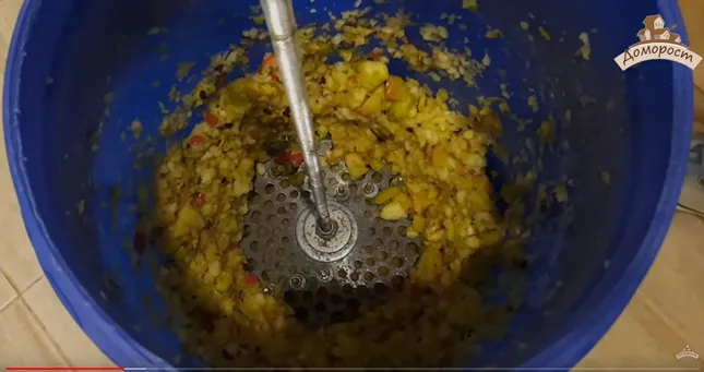 и получаем первое ведро еще не до конца правильно перемолотого яблочного пюре