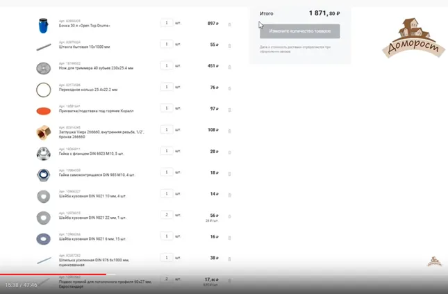 Теперь очень Подробно. Что где и как купить для измельчителя , как сделать такой измельчитель и сколько он стоит. Я купил всё нужное через заказ на сайте в Леруа Мерлен.