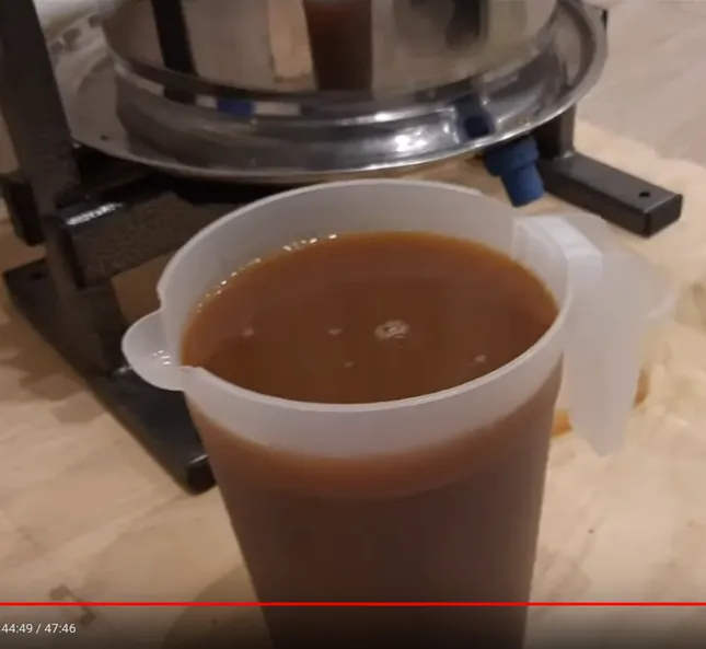 И выход сока очень хороший и ничего в прессе не надо промывать после каждой выжимки. Выдавил сок …….Прокрутил винт ……….и пресс готов к закладке новой порции пюре. Ну вот и всё . Я рассказал как давить много сока из солидного урожая яблок и что для этого нужно. Не теряйте время, делайте сок. Сок можно пастеризовать, крутить в банки и зимой всем радоваться очень вкусному соку :