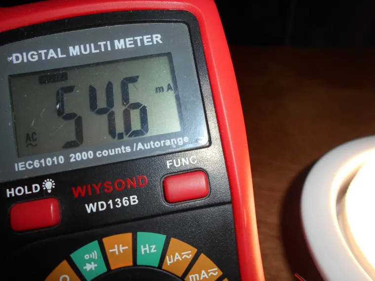 @Gades предположим коэффициент мощности подобных ламп 0,5 - 0,6 . Так какой ток я увижу на приборе ?