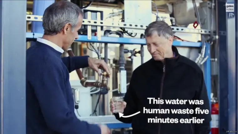 (На фото Билл пьет воду, которая была фекалиями 5 минут назад)