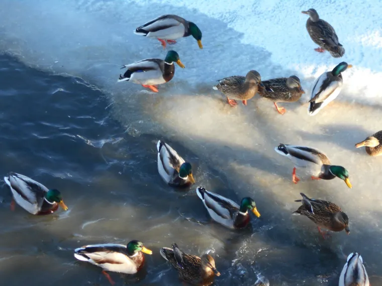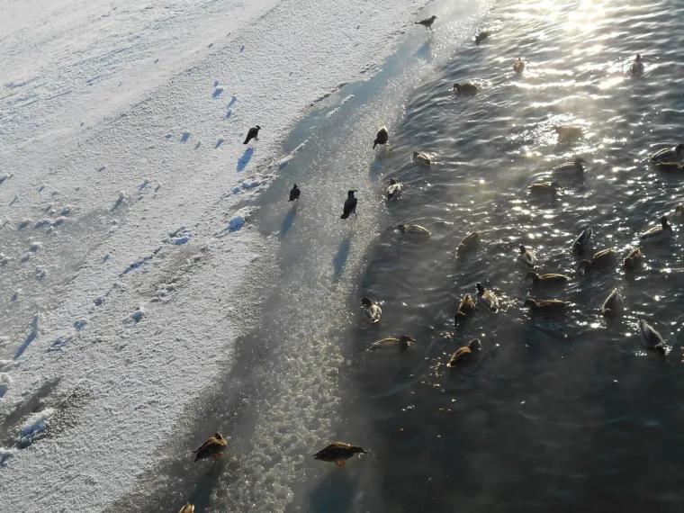 @Схемотехник их не положено вроде хлебом кормить, но летом они что то со дна едят и от хлеба клюв воротят. Сейчас холодно и уткам похоже все равно чего есть . Они и за хлеб дерутся и щиплют друг друга. Хоть кино снимай! Народ их регулярно подкармливает. Как то еще со школы приучили , что хлеб выбрасывать нельзя ...Потому то люди кормят животных хлебом и стараются не выбрасывать .