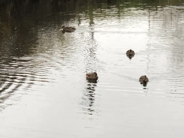 В выходные на пруду увидели уток - 3 селезня и 5 уточек. Никогда их там не видела. Не побоялись у нас передохнуть.