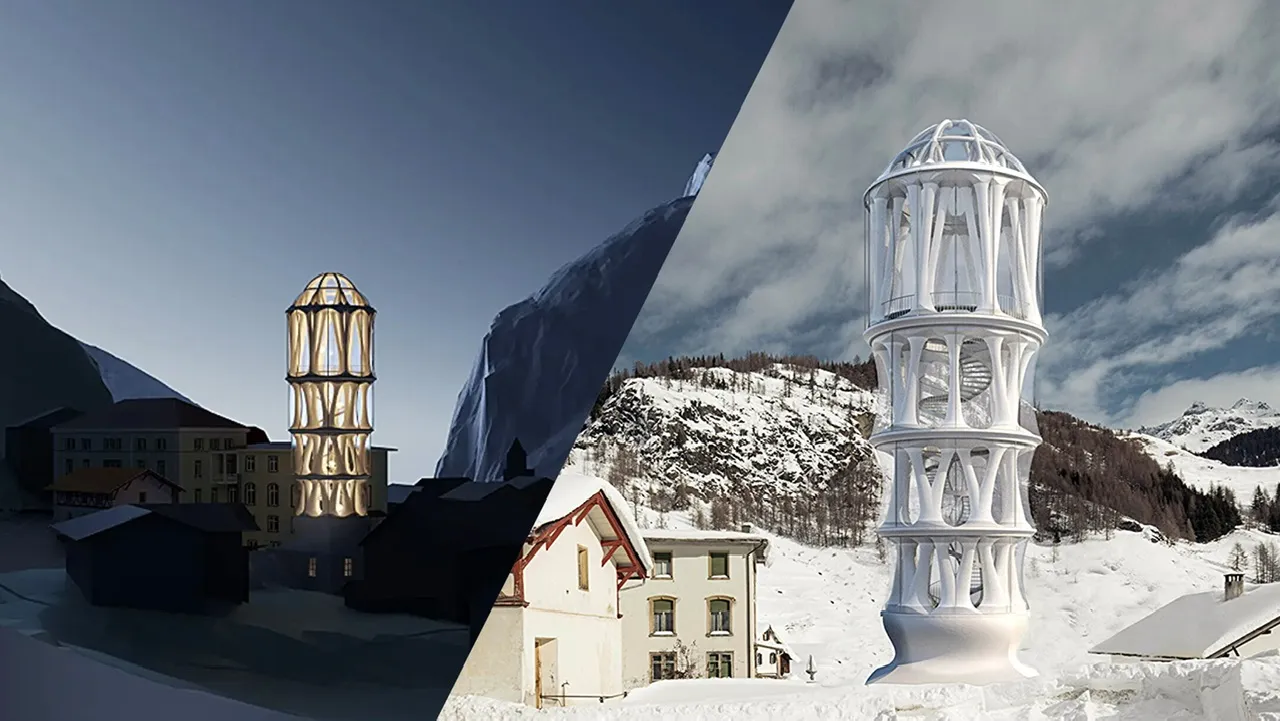 Белую башню Tor Alva печатают по частям. Постепенно эти части будут транспортироваться и затем собираться на площадке в отдаленной деревне Мюленс в Швейцарских Альпах.
