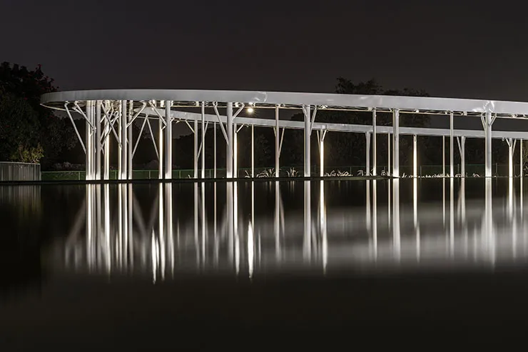 Дизайнеры и архиректоры сначала изучали потенциал оставшихся строений, что было стартом для начала работ. Потом некоторые конструкции были изменены, а какие-то дополнены. Теперь весь парк освещается по вечерам, однако на ночь освещение выключается, чтобы не дезориентировать ночных животных.