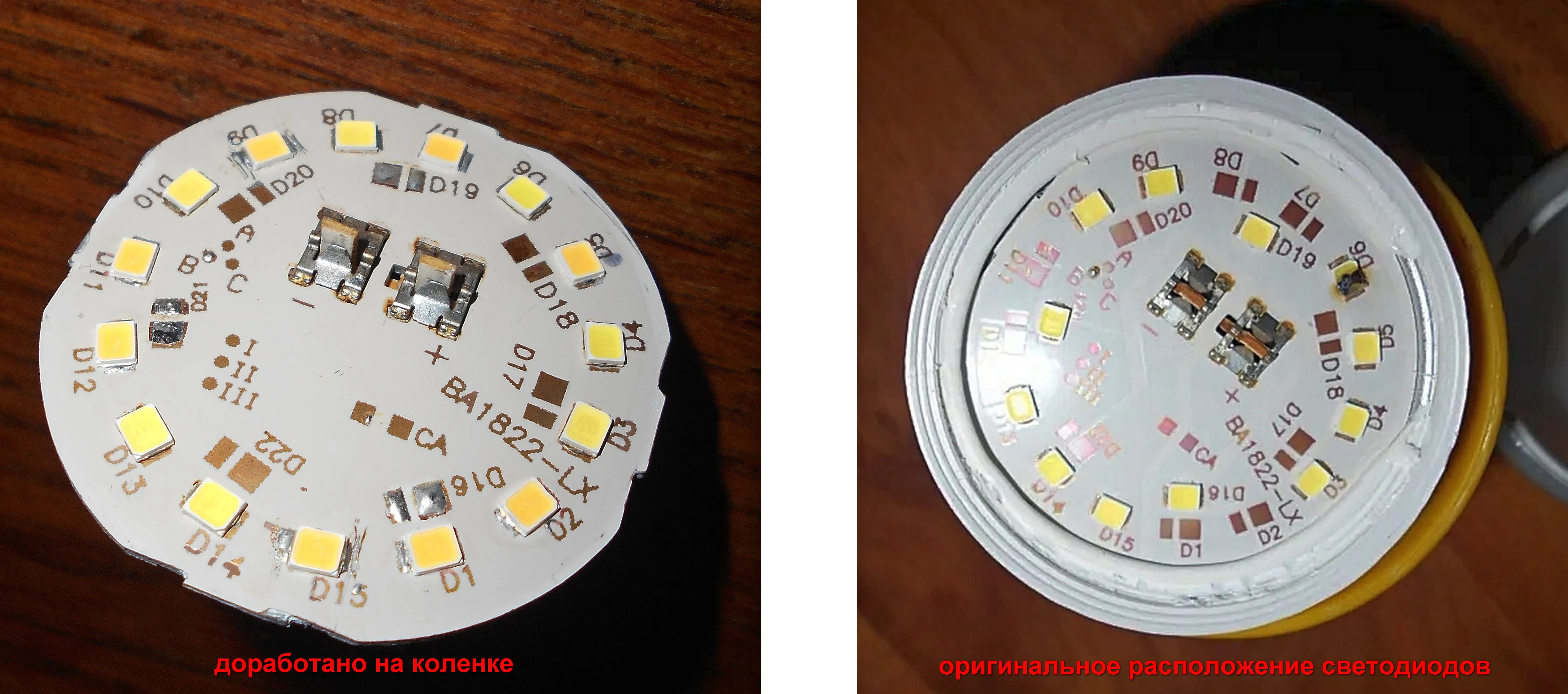 Получается, после доработки, все диоды установлены по "внешнему" диаметру. То есть существенно увеличено количество светодиодов.