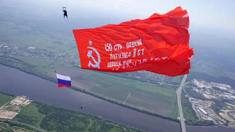 А распростерлось полотно в небе размером 375 квадратных метров благодаря парашютистам, которые развернули его в процессе прыжка. Это самое больше знамя Победы за всю историю страны. Параллельно в небе еще можно увидеть флаг России в размере 600 метров, и флаги Ростеха и «Технодинамики». Прыжки парашютистов также были посвящены празднованию 75-летия Победы в Великой Отечественной войне. При этом подобные прыжки могут выполнить только специально подготовленные люди, так как парашюты предназначены для десантирования с большими грузами. Только представьте, флаг России с грузом и креплениями весит 120 кг, знамя Победы – 110 кг.
