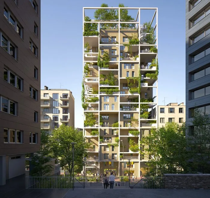 В предместье Парижа началось строительство жилого здания нового типа в рамках проекта «La Serre» (оранжерея). Основную лепту в возведение вертикальной деревне внесла компания MVRDV из Нидерландов. Простыми словами, будет построен дом, в котором жилые сооружения будут окружены натуральными растениями.