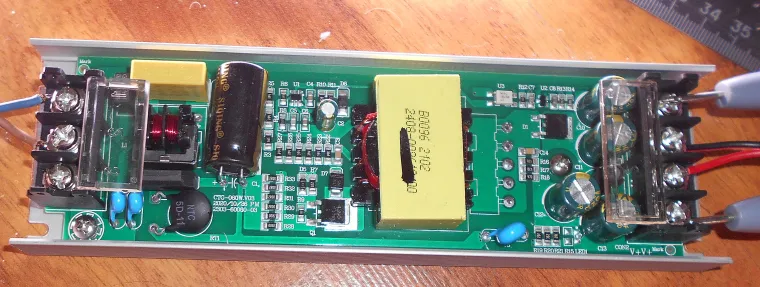 а над алюминиевыми панелями потолка спрятаны блоки питания (36W)для этих ламп. Их там 5 штук . Вот такие блоки питания : Mean Well AC/DC APV-35-12 Т02039743 https://www.vseinstrumenti.ru/electrika-i-svet/aksessuary/dlya-osvescheniya/bloki-pitaniya-i-drajvery/mean-well/ac-dc-apv-35-12-t02039743/