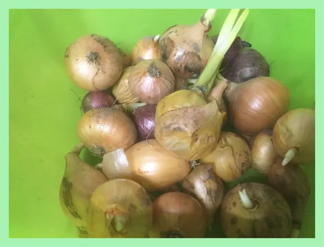 Прошло 2 недели и вот уже мы с отличным свежим луком! Теперь подсчитайте площадь, на которой разместились луковицы. Экономия на лицо.