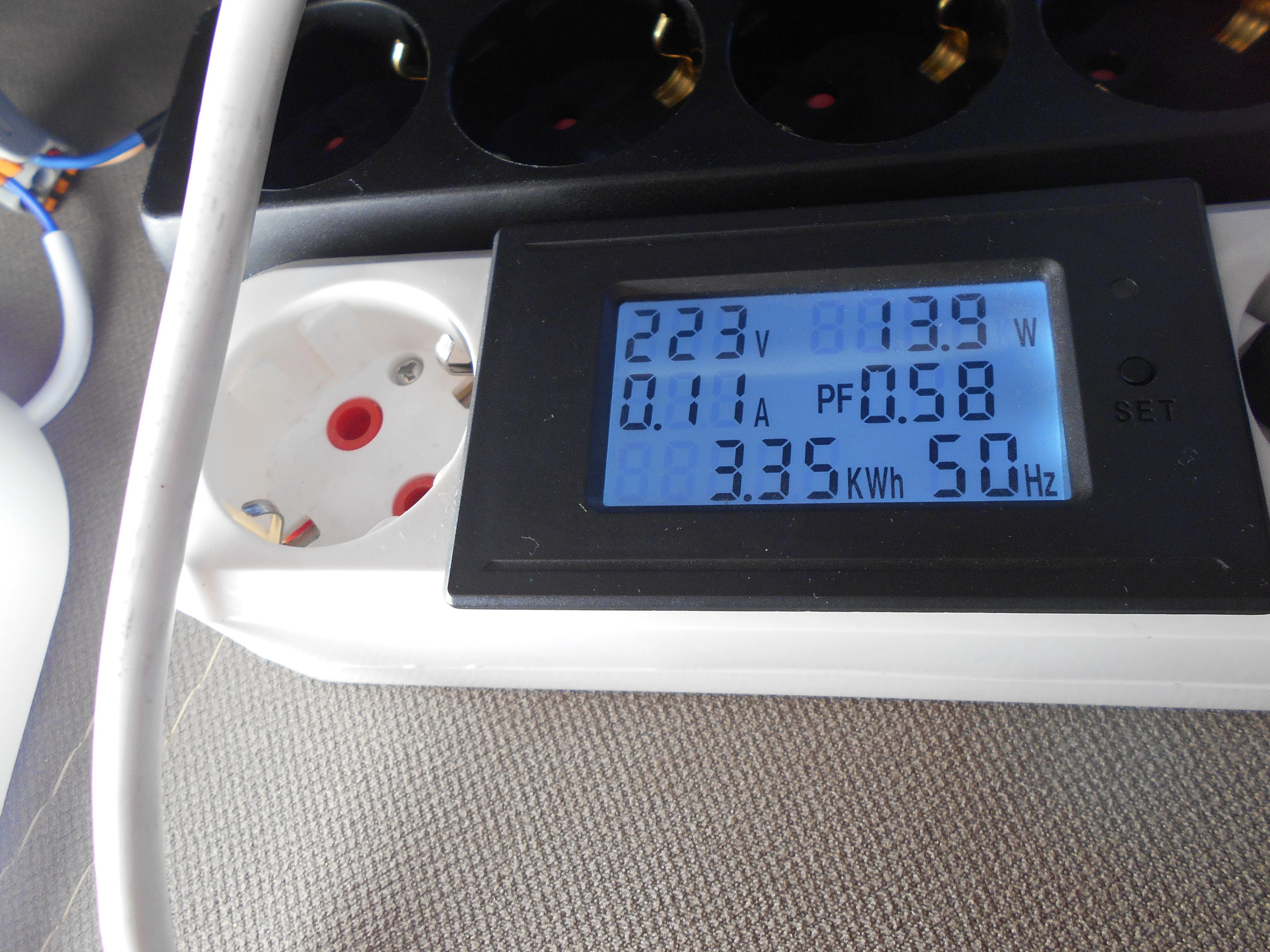 В общем включаю ! Потребляемая мощность 13,9 Вт . Что? Коэффициент мощности 0,58 ! А как же обещанный коэффициент 0,8 ?