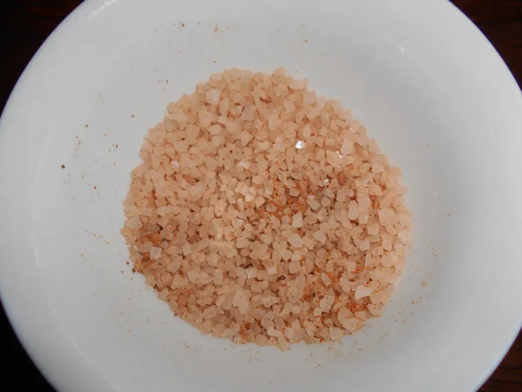 В качестве посолочной смеси на этот раз попробую морскую соль и как обычно смешаю с красным перцем