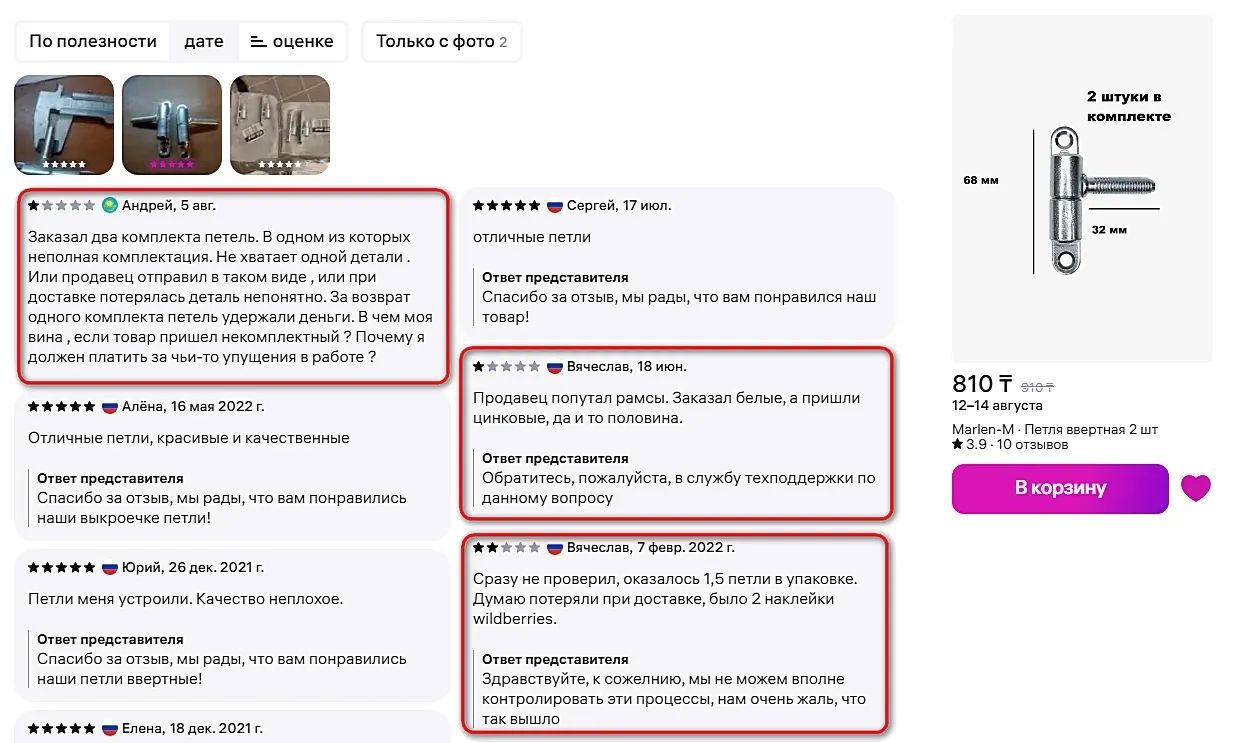 Всем здравствуйте ! Всем известная барахолка Wildberries в очередной раз пробила дно. Заказал два комплекта ввертных петель , в каждом по четыре детальки. Один комплект полный , а во втором не хватает одной детальки . За отказ от некомплектного товара с меня удержали 469 тенге или 100 рублей за обратную доставку товара. На вопрос в чем моя вина ответа не было . Получается за чьи-то упущения в работе на стадии сборки товара или частичной утери при его доставке оплачивает покупатель. Как Вам такой беспредел ? Я понимаю если пришел комплектный товар надлежащего качества и мне просто не захотелось его выкупать . Но здесь же совсем другое . Товар пришел некомплектный , а пострадал я . В общем помойка она и есть помойка . Добро пожаловать в Wildberris !