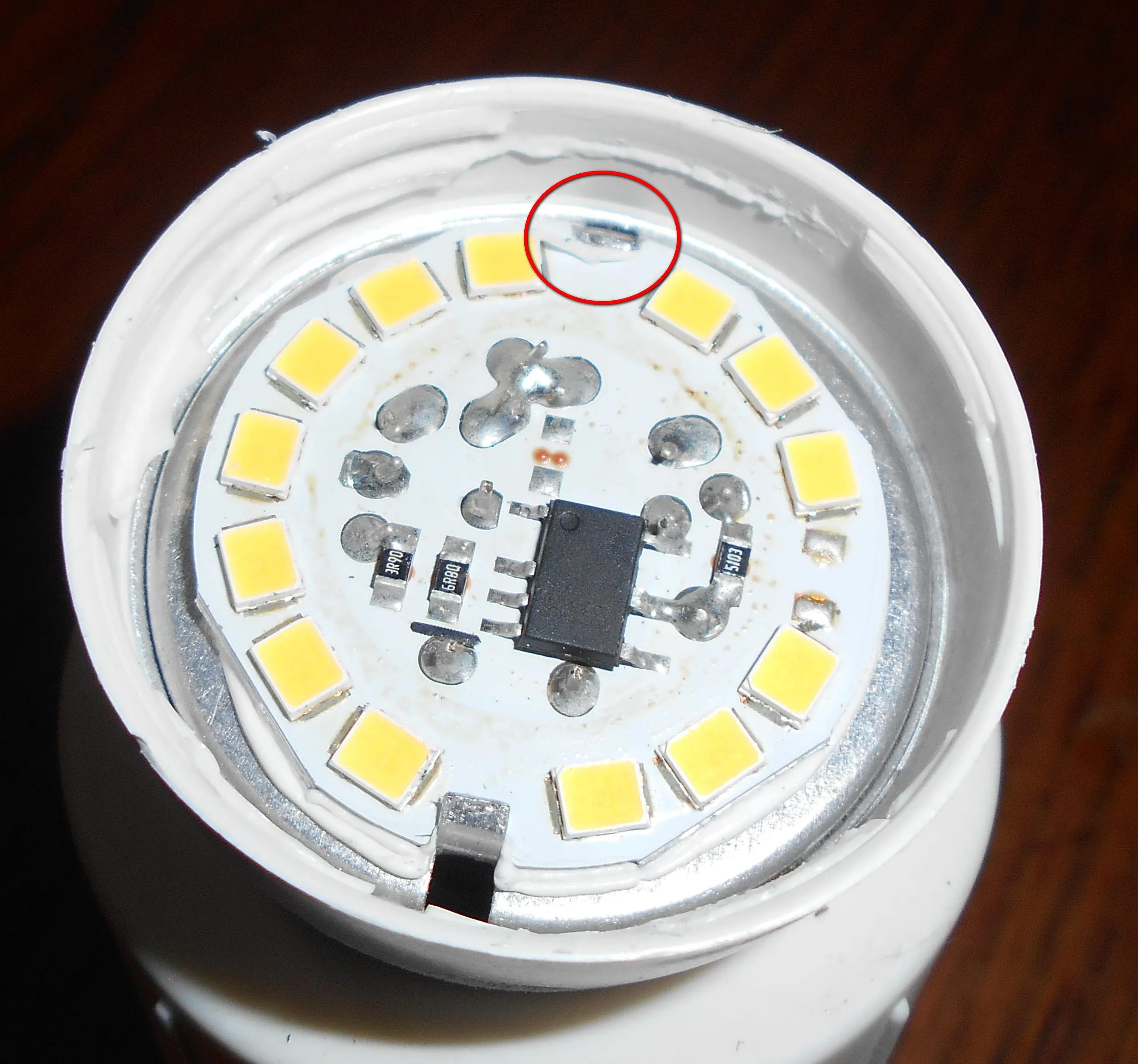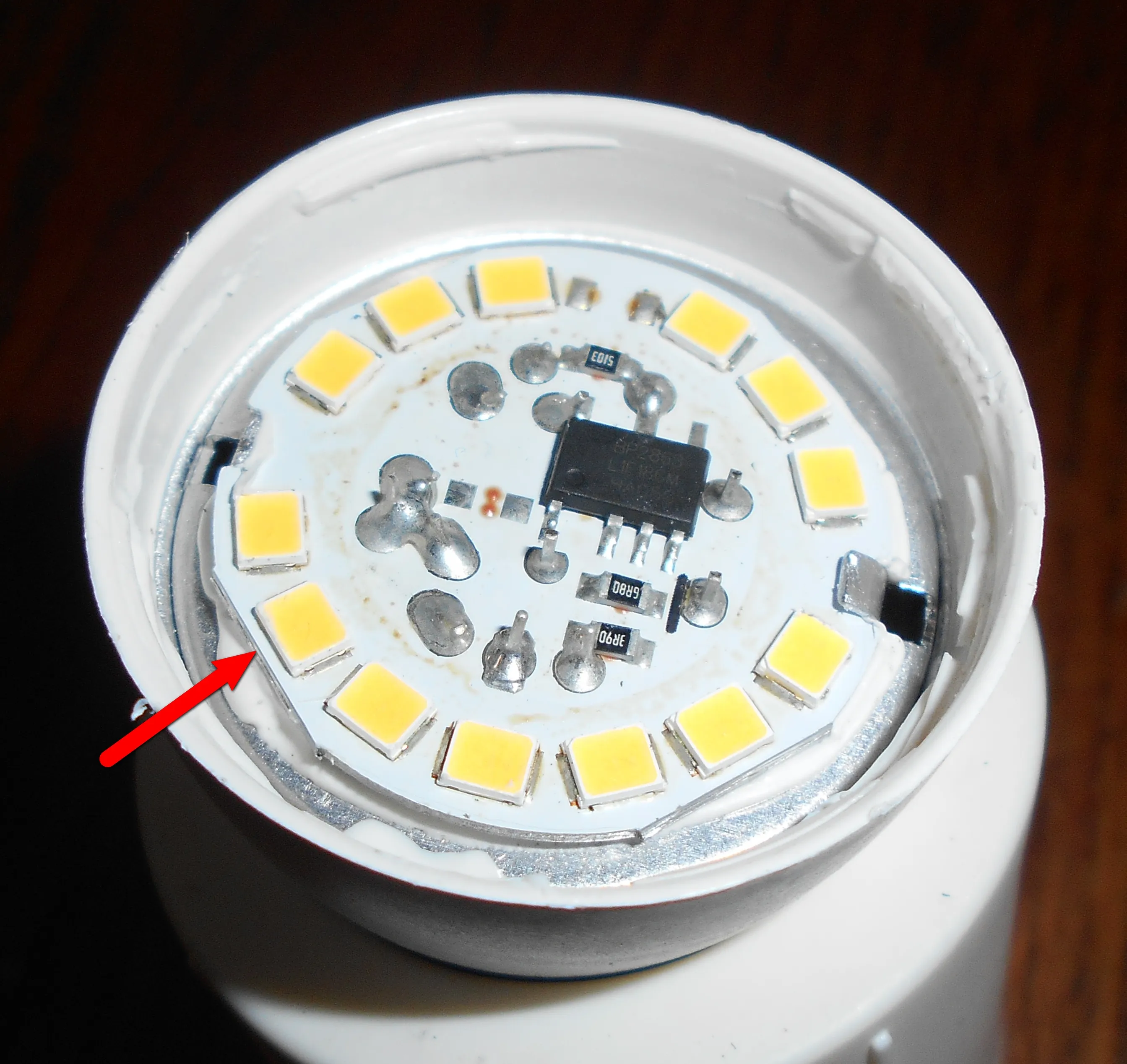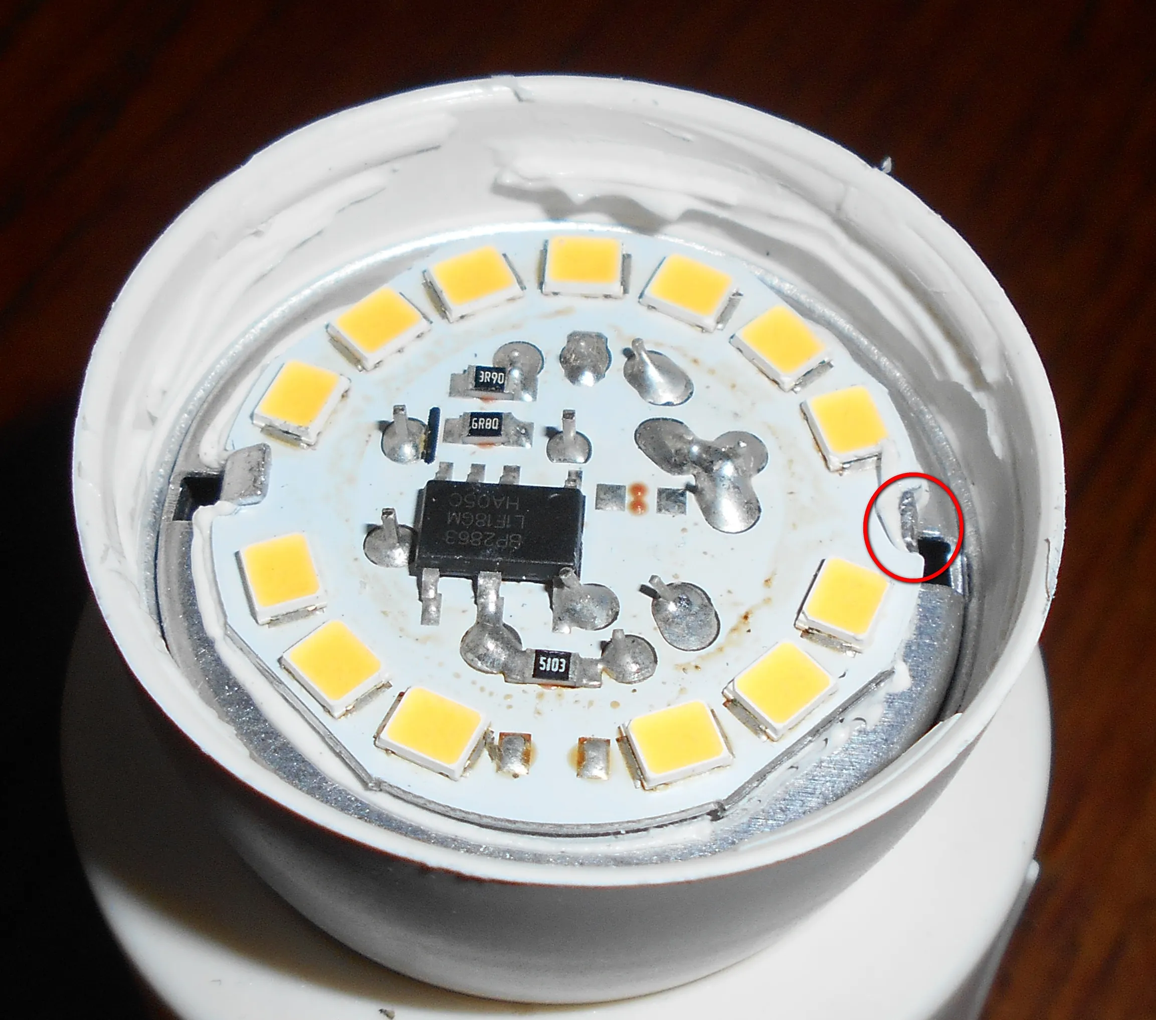 Как то кривенько установлена диодная плата . Язычек справа не загнут как положено .