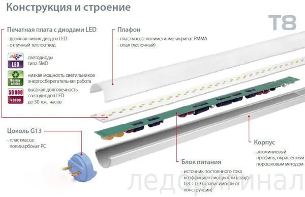 @Схемотехник не так давно попадались светодиодные лампы Т8 длиной 60 мм. Не стеклянные , как разбирали на youtube. Корпус алюминиевый полукруглый в который заведена светодиодная полоса . Сверху рассеиватель пластиковый . Но я хотел про драйвер написать . В нем тоже после моста не было электролита , а на выходе драйвера вроде 100 мкф. Вот на картинке что то похожее