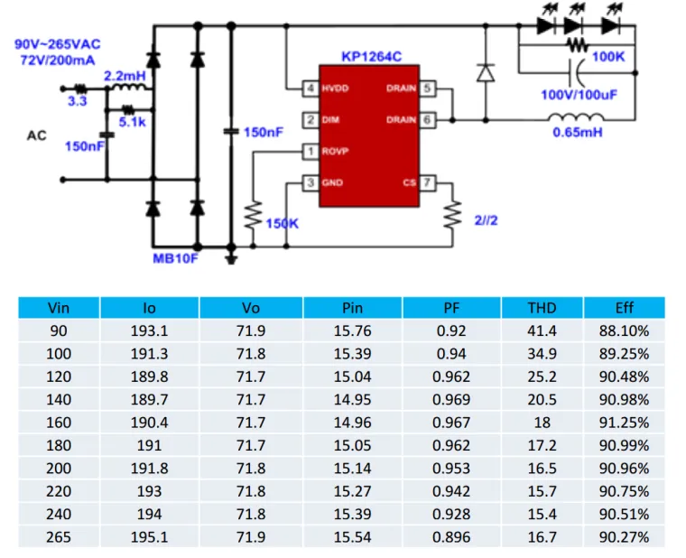 @Андрей-Туманенко, даже пример расчета приведен... параметры заточены для эффективного ЖКХ или торговой точки... Ни одного слова о пульсациях тока в нагрузке... Еще вот что интересно... Согласно табличке, коэффициент мощности примерно одинаковый на всем диапазоне входных напряжений. А вот с коэффициентом гармоник тока (THD) (ранее назывался коэффициентом несинусоидальности кривой тока или напряжения) не так все просто... Схема драйвера, даже при наличии LC фильтра на входе, потребляет от сети ток, форма которого далека от синусоидальной. Проще говоря, форма тока не совпадает с формой сетевого напряжения... Думаю, что на "пике" синусоиды - ток минимальный, а когда синусоида "падает" - потребляемый ток увеличивается... То есть, ток по форме своей противоположен напряжению...