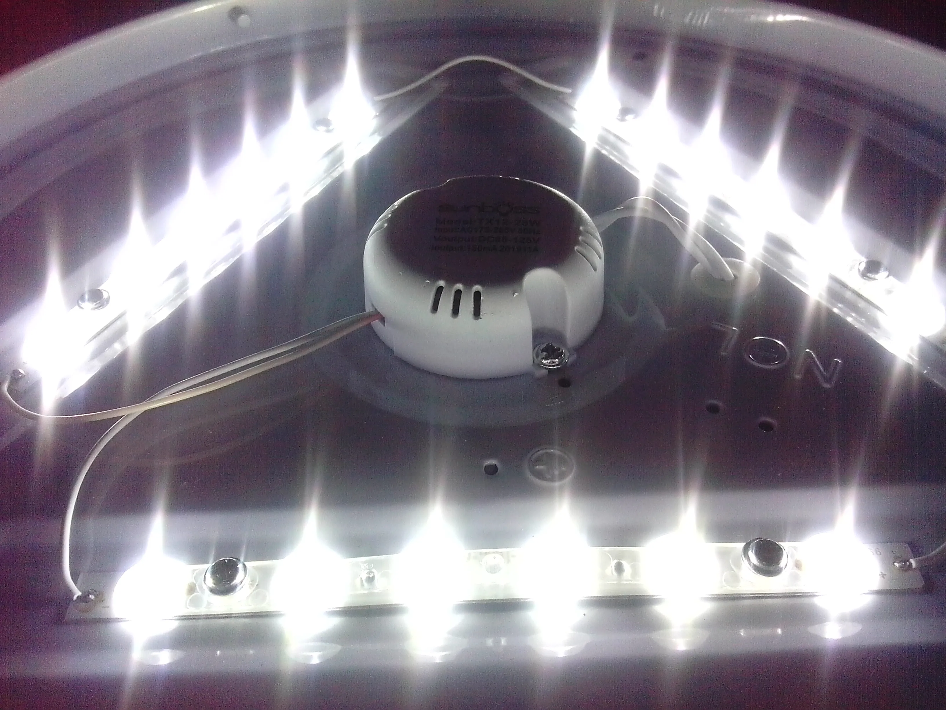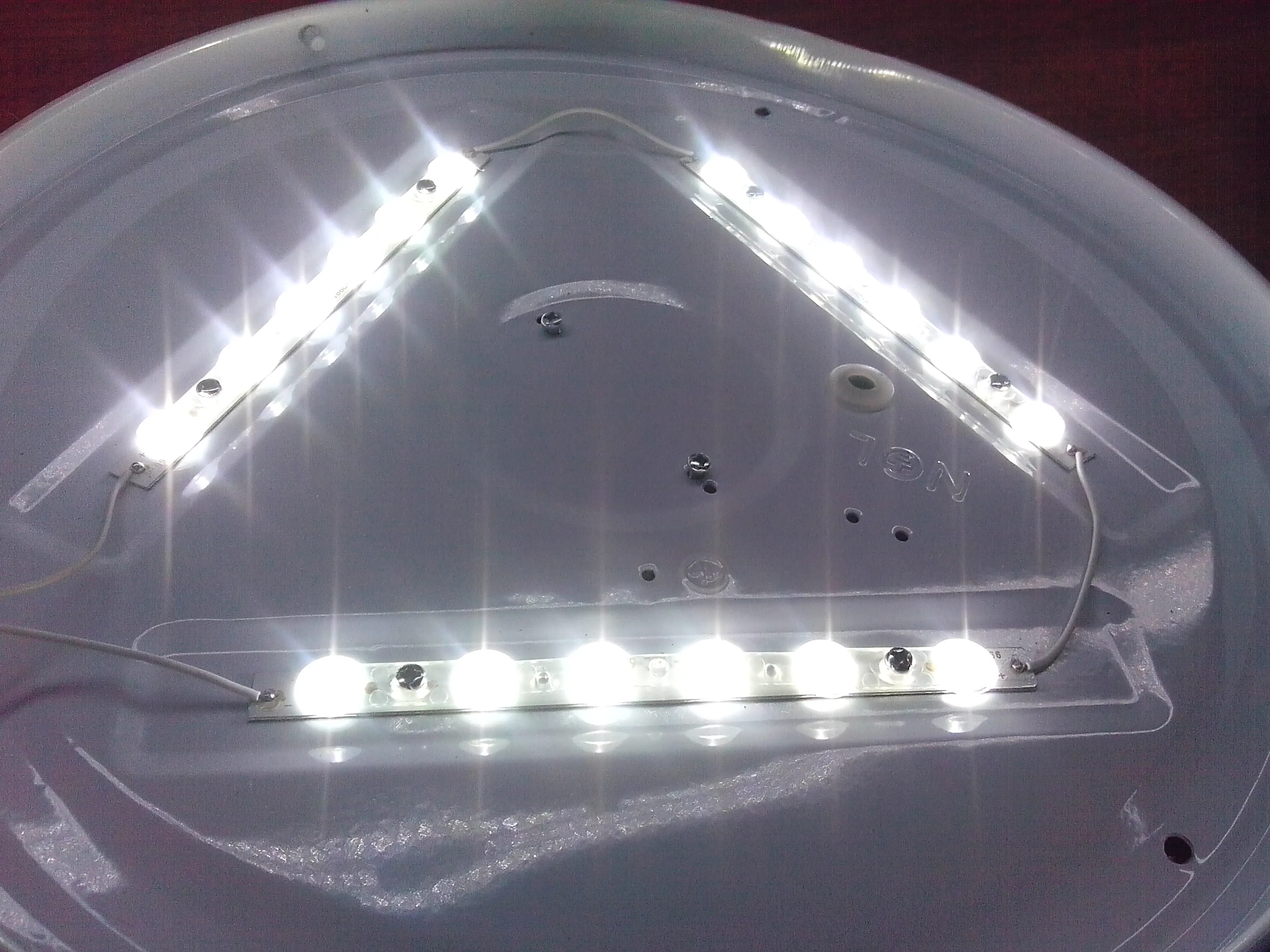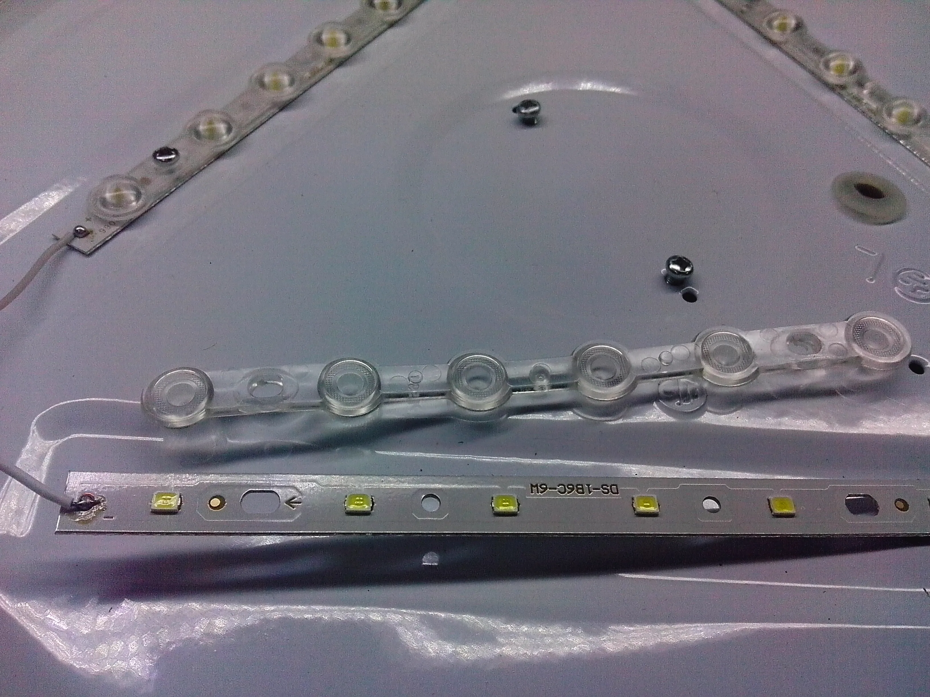 Под линзами обычные светодиоды 2835 в количестве 18 штук. Светодиодная плата алюминиевая. Желательно прикручивать с использованием термопасты , т.к. между винтами не прилегает к корпусу светильника.