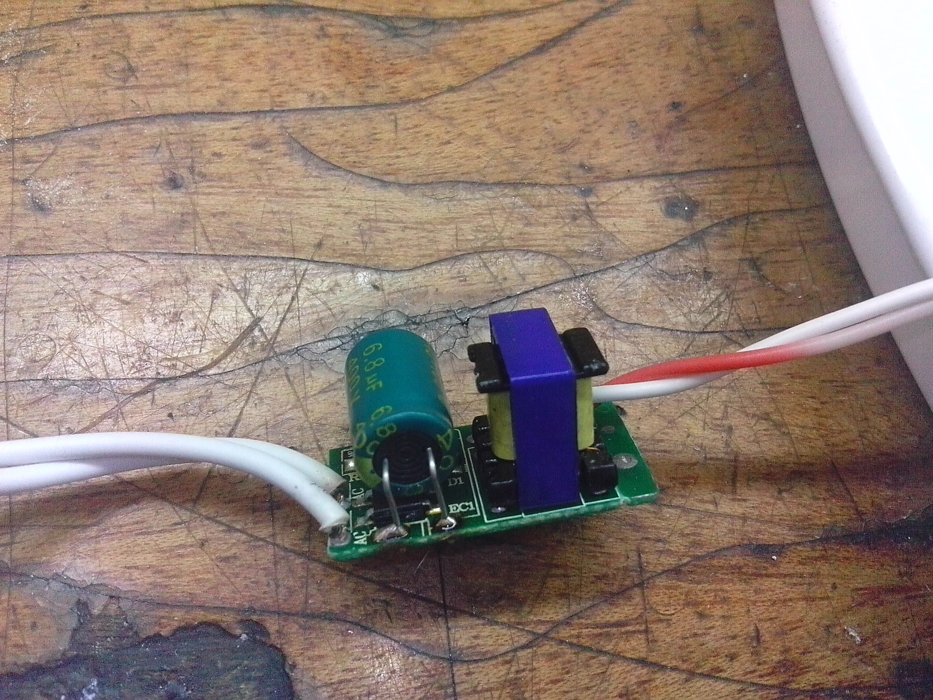 Обычный импульсный драйвер , без гальванической развязки . После 15 минут работы светильника пошел дым из электролитического конденсатора. После его замены никаких больше проблем не выявлено .