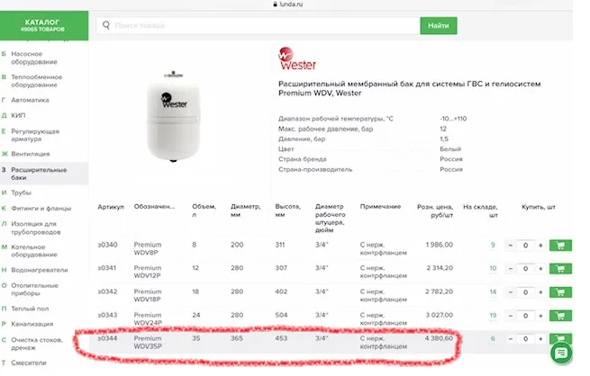 Начало этой истории читайте в "Лопнул расширительный бак системы горячего водоснабжения". Там все и подробно о том, как на собственном опыте мне пришлось понять, почему в систему ГВС нельзя ставить расширительный бак, предназначенный для систем отопления (СО). Но купить бак для ГВС заметно сложнее и дороже, чем бак для СО. Расширительные баки СО всех объемов спокойно лежат на полках Леруа Мерлен, например. А вот баков для ГВС Леруа Мерлен по неводомой причине не держит . Продавец-консультант ответил - "Ну что вы! Баки ГВС ищите не у нас, а в специализированных магазинах..." Ну и ладно, понесу свои деньги не в Леруа , раз они такого не держат... Естественно, колесить по дорогам Подмосковья в поисках нужного магазина уже теперь мало кто готов. Интернет теперь наше всё . Особенно в покупках. Несколько минут и найден нужный интернет магазин и сделан заказ. Так как кроме бака накопилось много чего, что давно собирался но так и не купил, то и это всё добавил в заказ, что позволило мне получить бесплатную доставку :-). Вот тот расширительный бак ГВС, который я купил себе на замену :