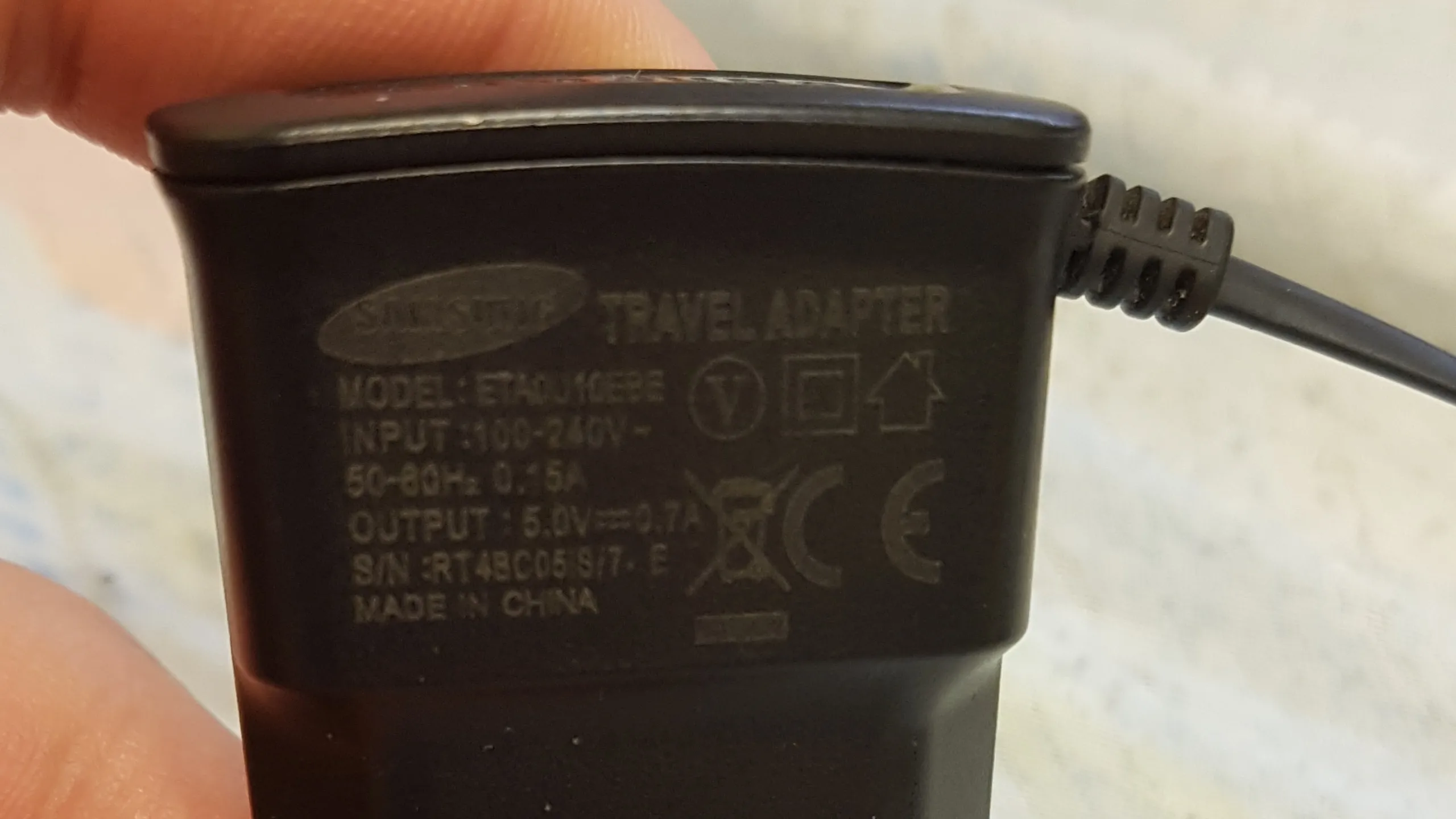 Всем привет. Недавно у меня вышел из строя блок питания Samsung, который шел в комплекте со смартфоном Samsung Galaxy S I9001 и прослужил целых 14 лет. Я постоянно им что то заряжал. А умер он вот так: он вроде бы работает, вставляю кабель в телефон, секунд 10 он заряжает и отрубается и не подает признаков жизни, пока не перевоткну в розетку. Блок питания шел с несъемным кабелем со штекером Microusb. Однако, кабель прослужил дольше блока, не вижу в этом проблемы. Но хотелось бы, чтобы шнур всегда был съемным. Его может кто то случайно порвать или сгрызть домашний питомец.