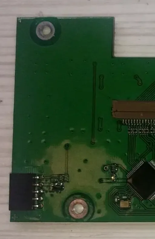 Левый нижний угол платы - не залитие. И не лопнувший конденсатор и к запланированному устареванию отношения не имеет .